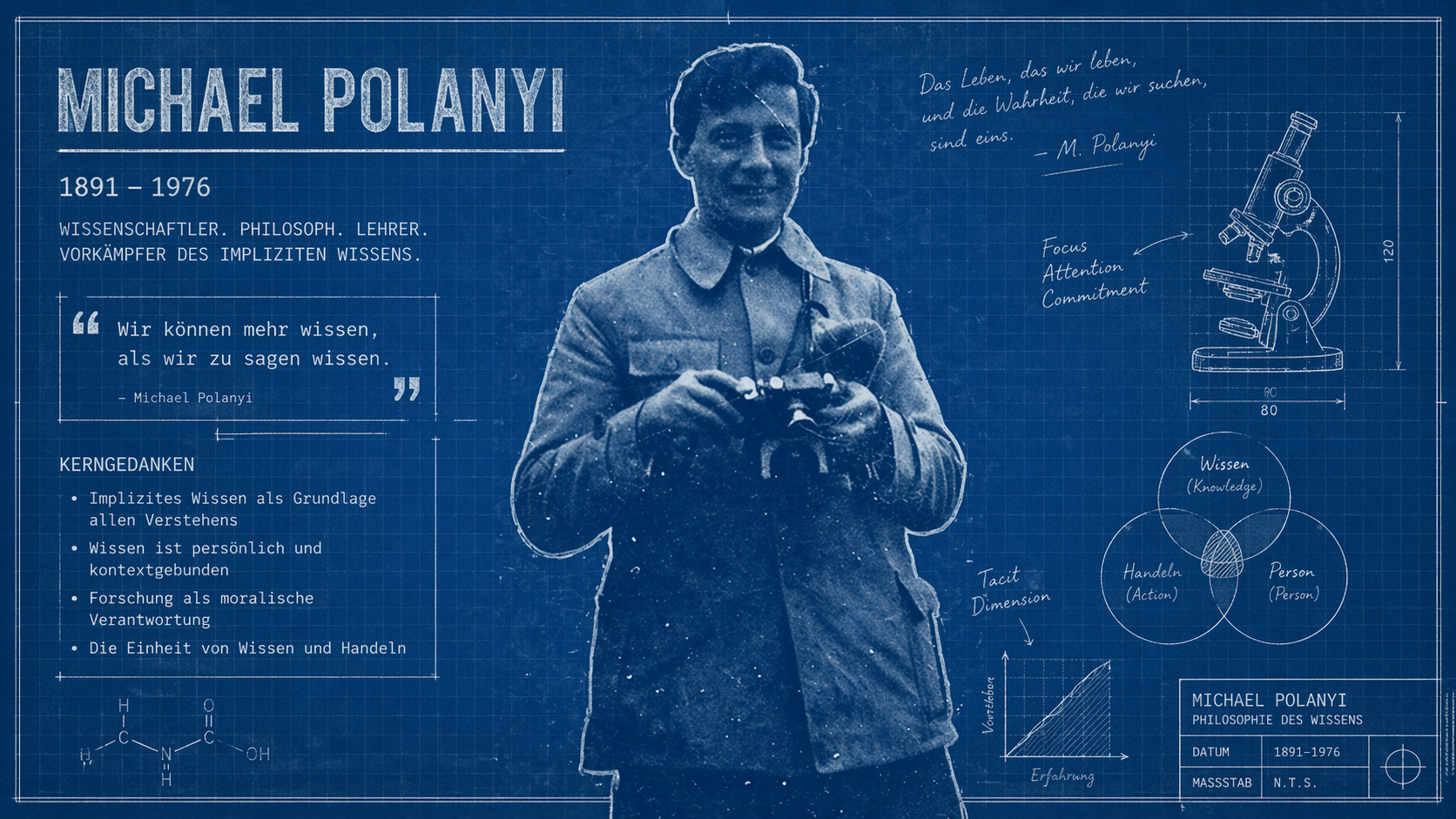 Polanyi wurde in Budapest geboren, floh 1933 aus Nazi-Deutschland nach England und lehrte bis zu seinem Tod in Manchester und Oxford. Er war Mitglied der Royal Society – als Wissenschaftler, nicht als Philosoph. Sein Wechsel zur Philosophie war kein Karriereschritt, sondern eine Konsequenz: Die Wissenschaftstheorie seiner Zeit beschrieb nicht, wie Wissenschaft wirklich funktionierte. Also beschrieb er es selbst.